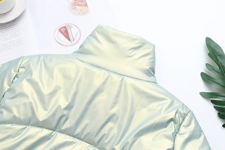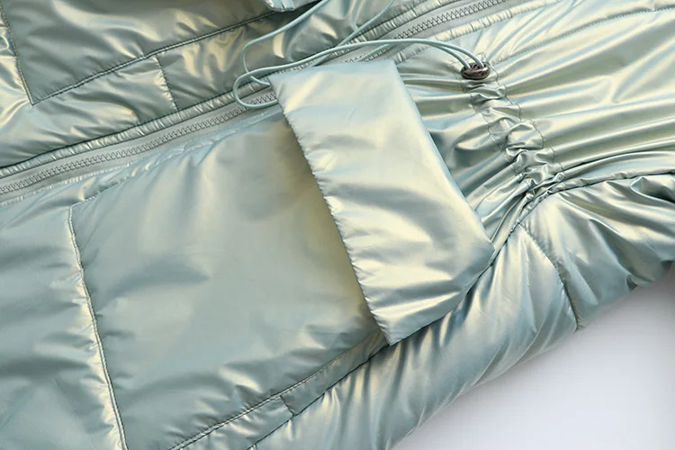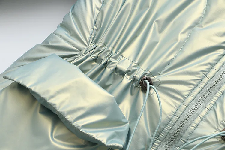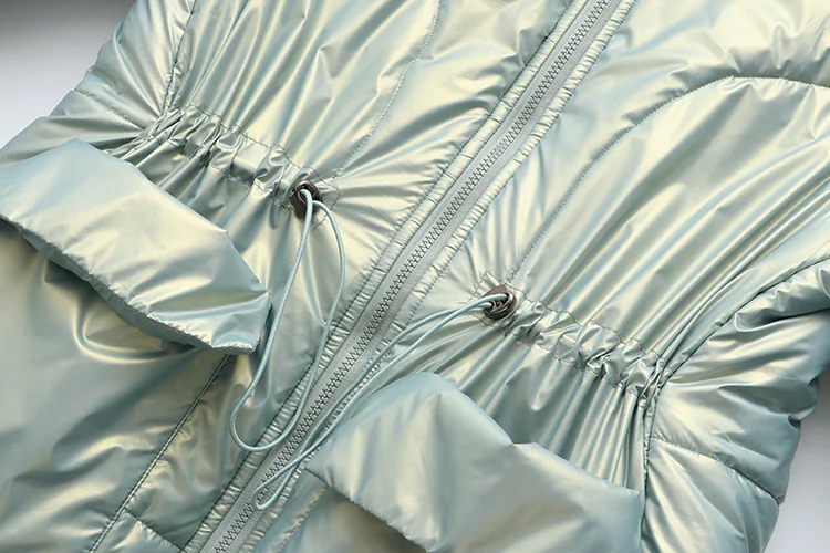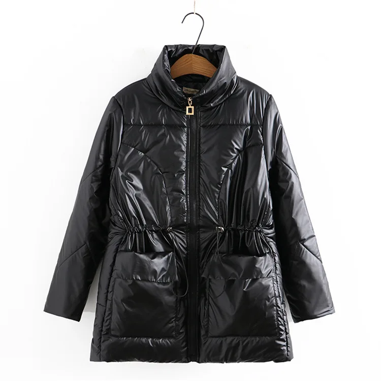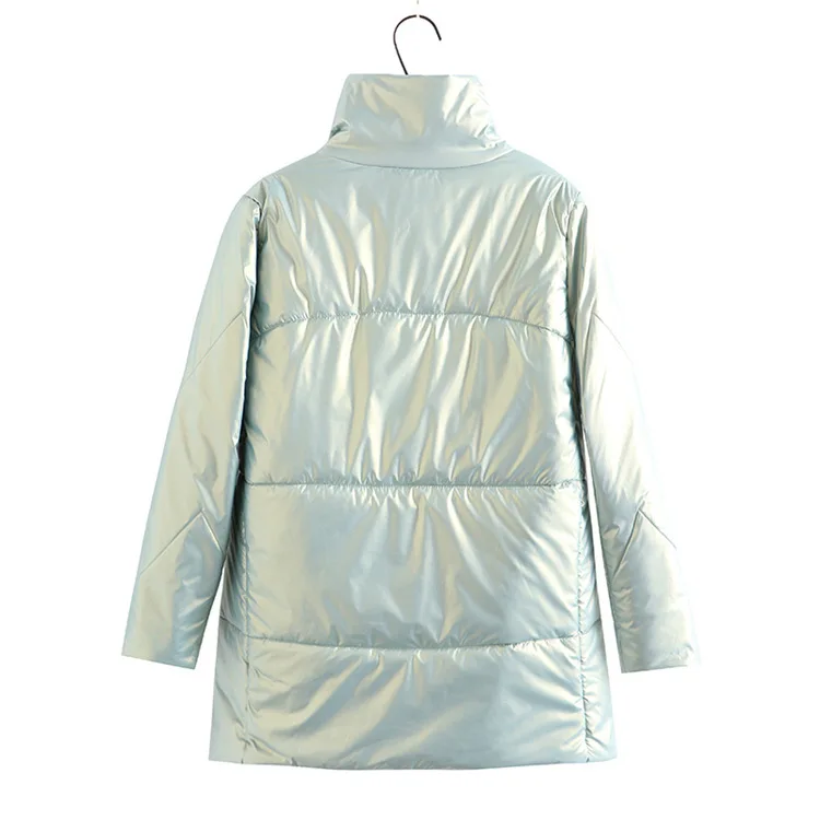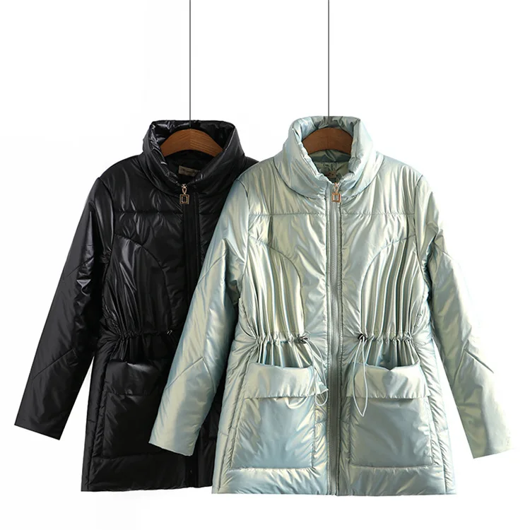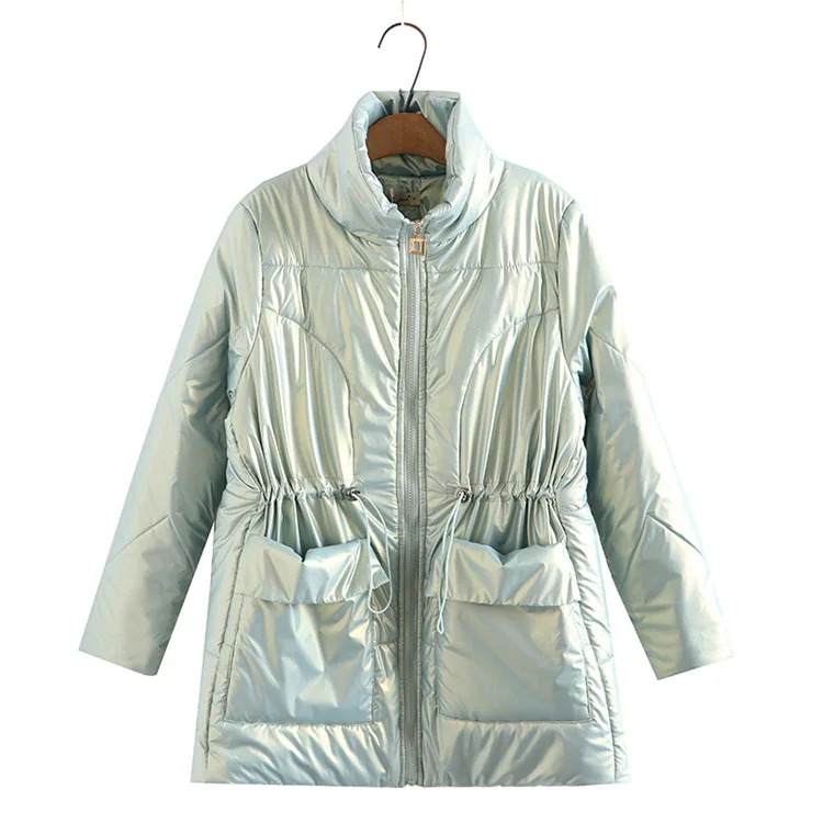 Women Clothing Parka Plus Size Winter Fashion Wadded Jacket Shiny Stand Collar Long Sleeve Thick Warm Padded Coat