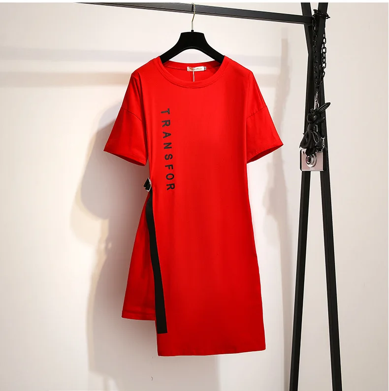 New Summer Plus Size Tops For Women Large Short Sleeve Loose Casual Cotton Scollop O-neck Red Long T-shirt 3XL 4XL 5XL 6XL 7XL