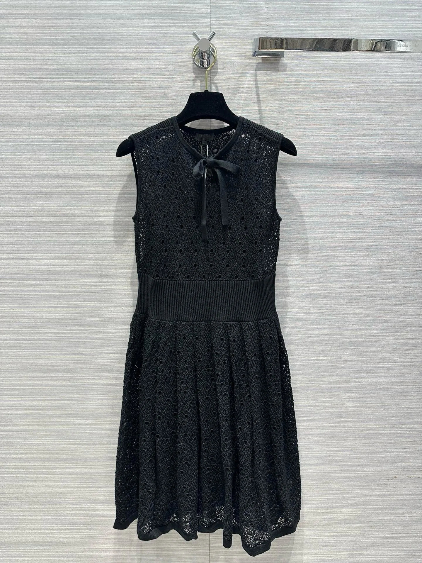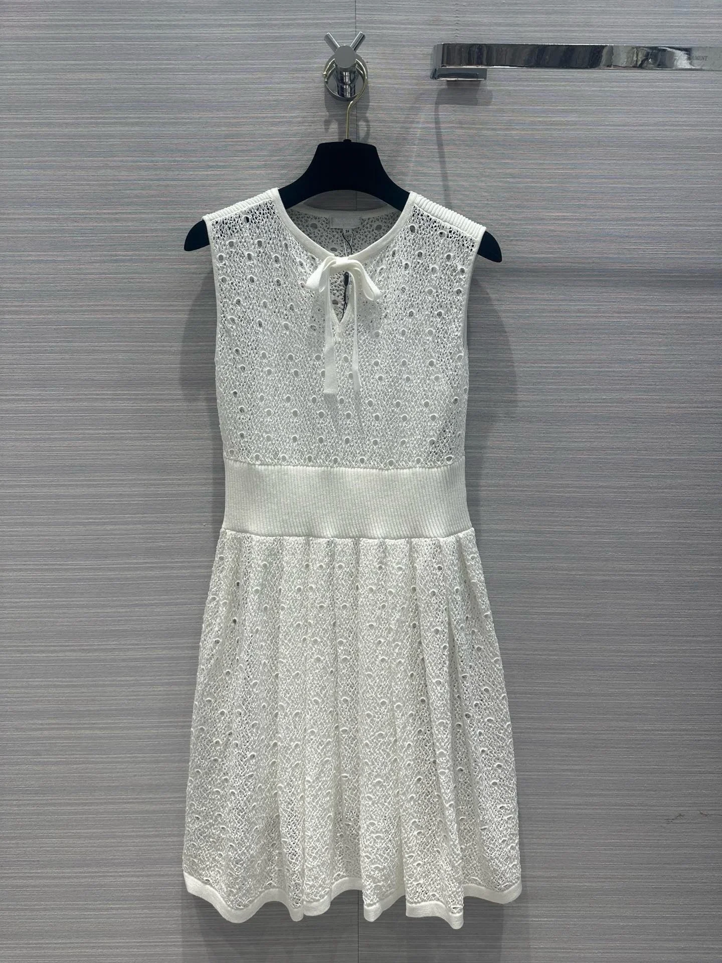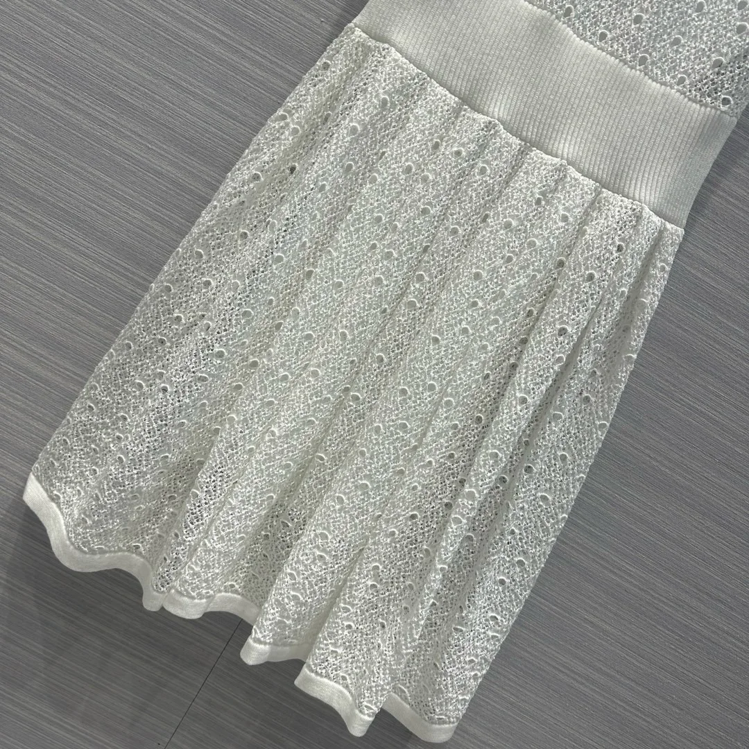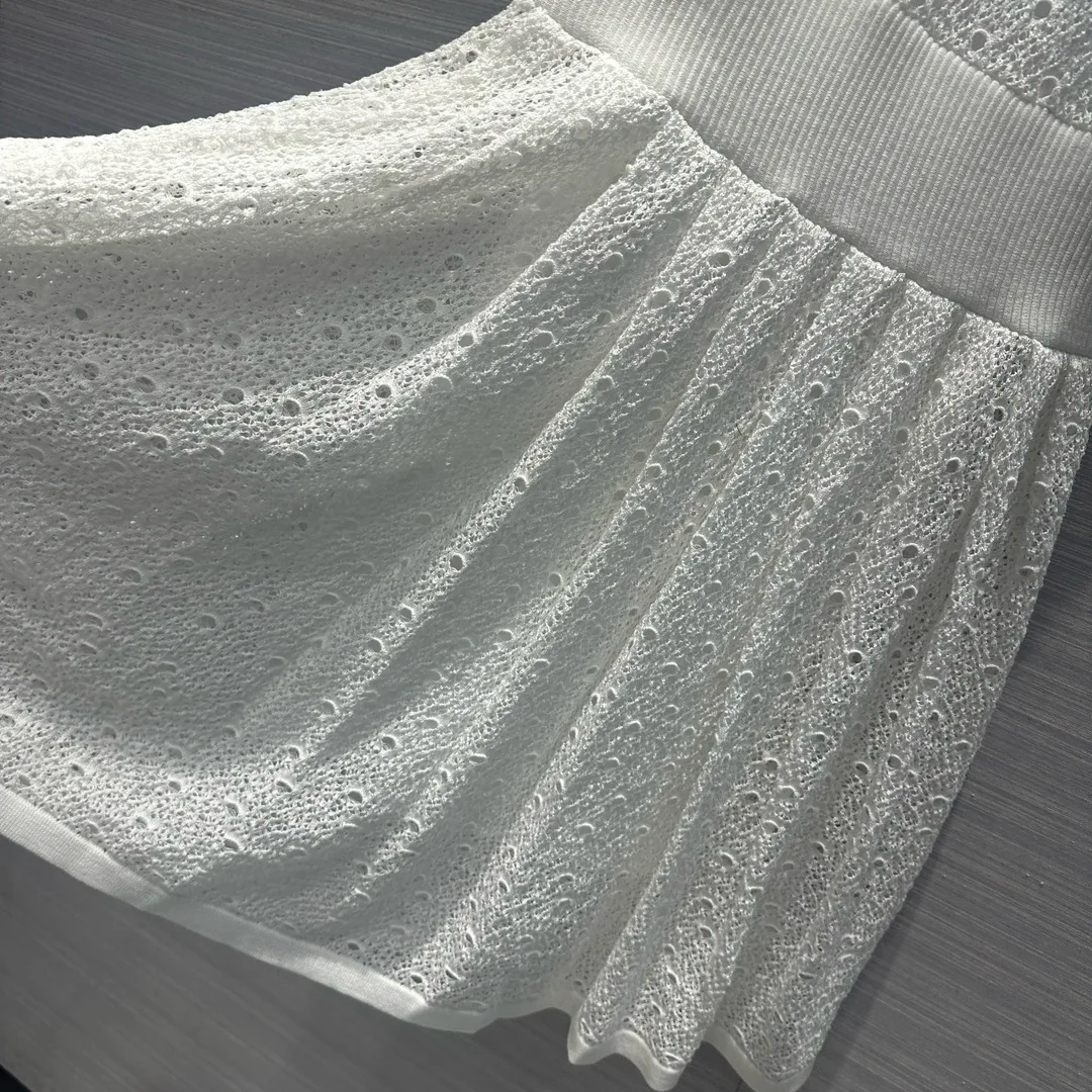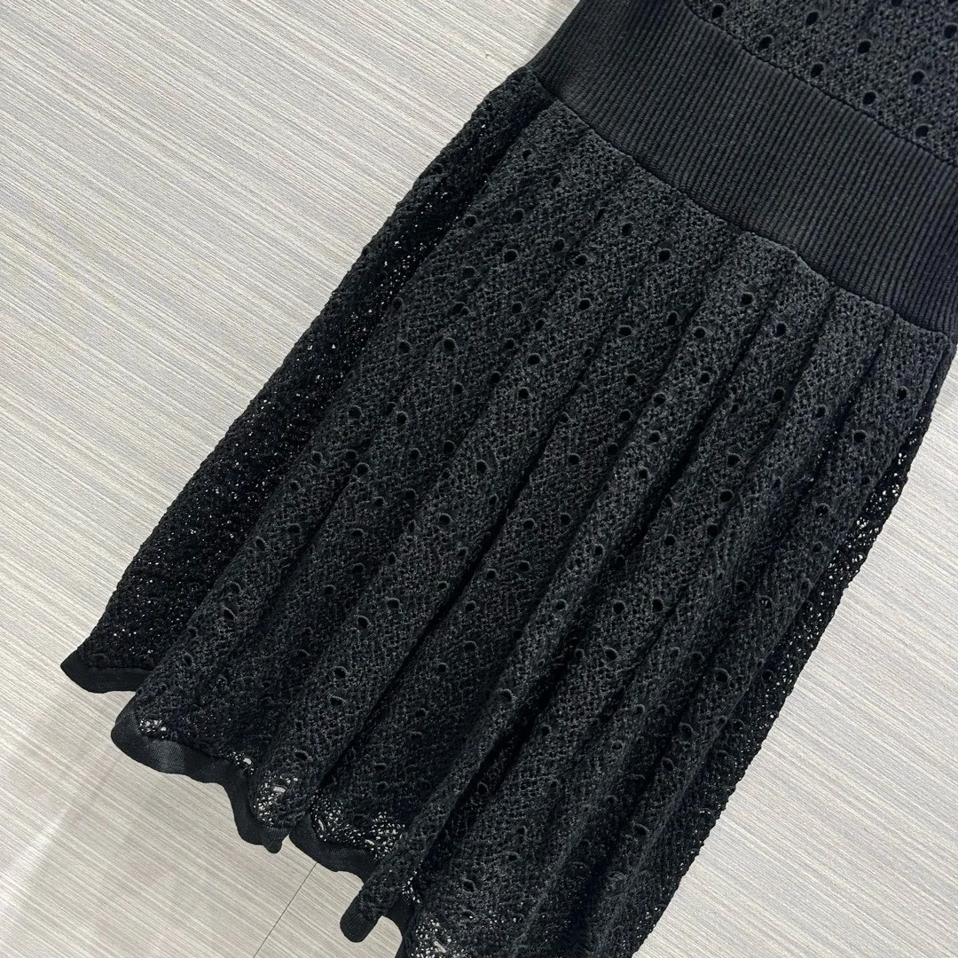 2024 Spring/Summer New Line Mesh Knitted Tank Top Dress Fluffy Pressed pleated Skirt hem Lace up Necktie Skirt