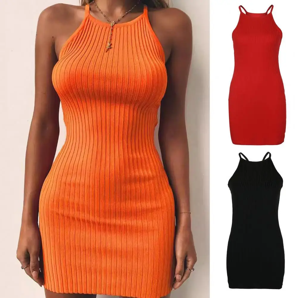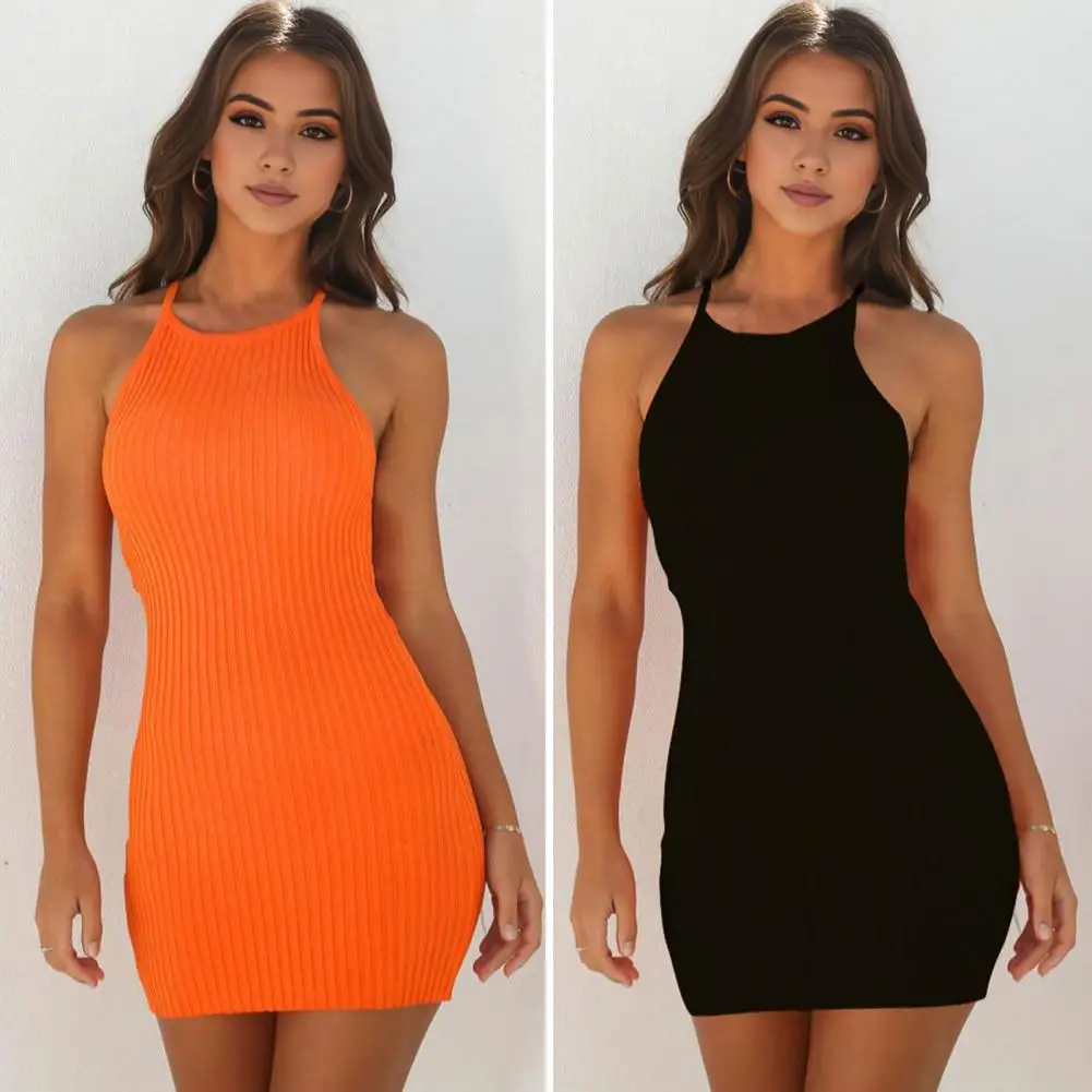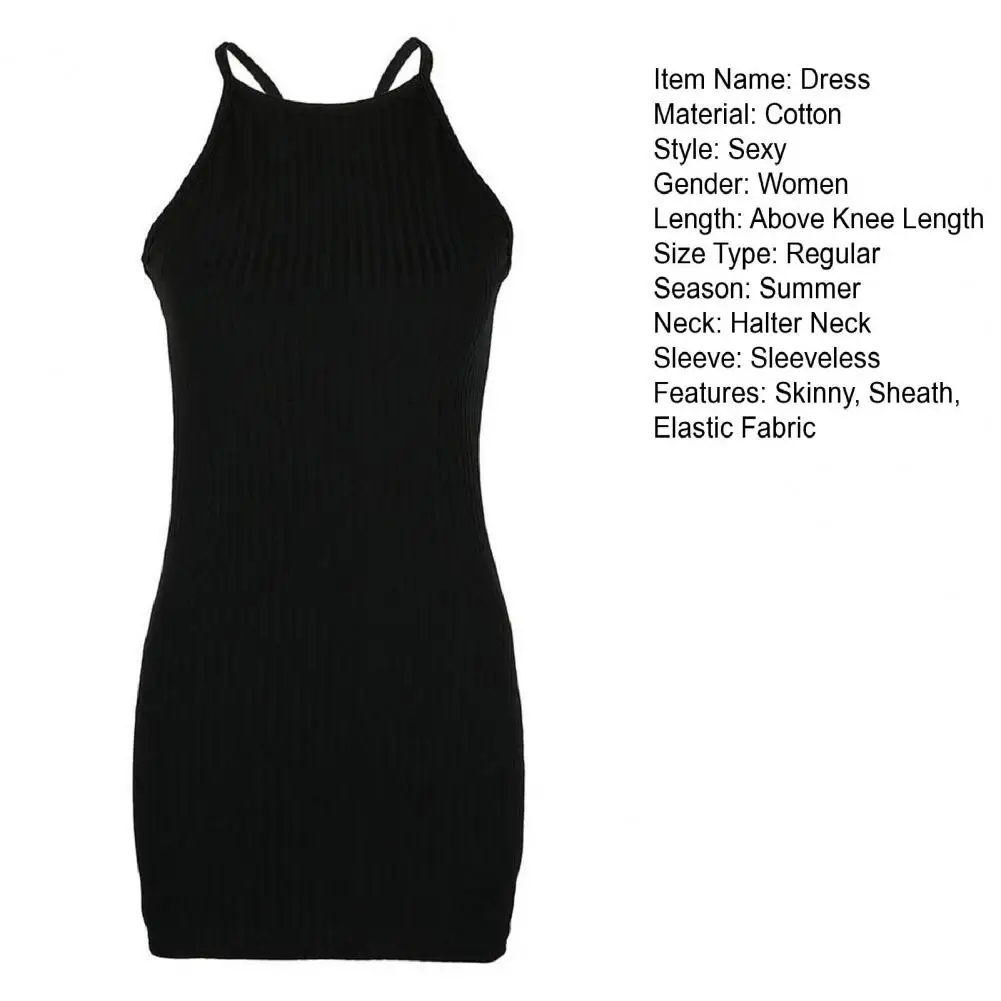 Sheath Dress Elegant Halter Neck Knitted Mini Dress for Women Chic Club Party Attire with Above Knee Length Solid Color Design