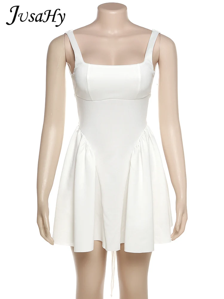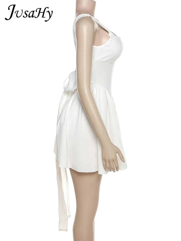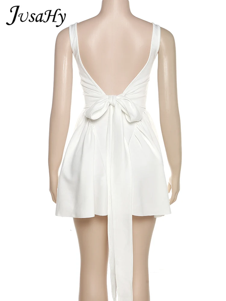JusaHy Women New White Sweet &High Streetwear Backless Halter Strap Bowknot A-line Dresses Chic Sweet Hot Party Mini Dress 2023