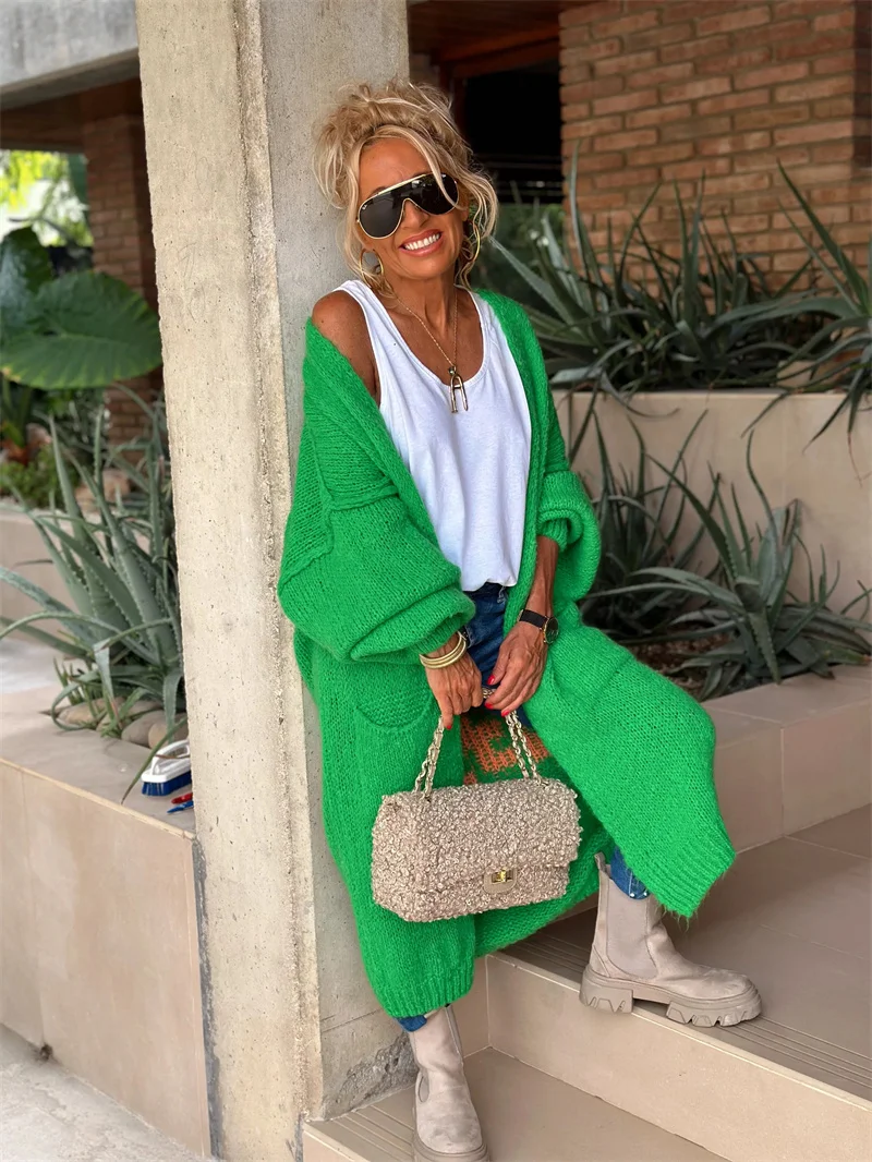 2024 Women’s New Cardigan Oversized Sweater Coat Fashion Sweater Long Button Autumn Winter Solid Color