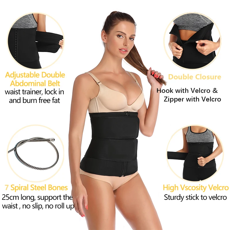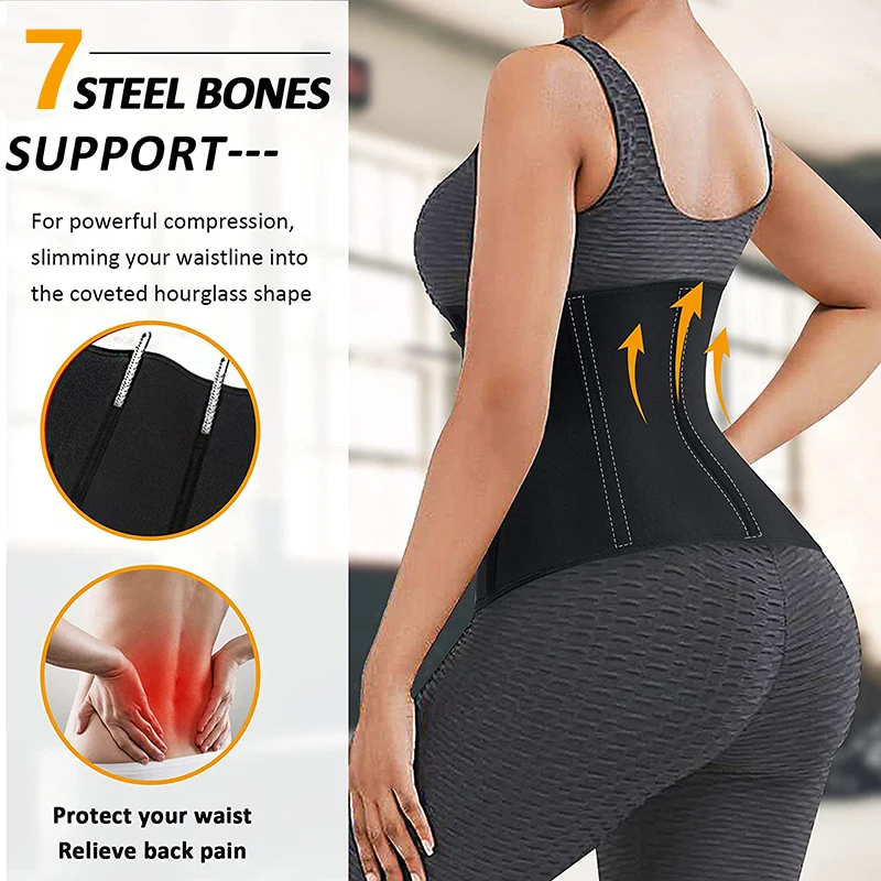 Workout Waist Trainer Corset for Women 7 Steel Bones Neoprene Sauna Sweat Waist Trimmer Cincher Slimming Body Shaper Belt Girdle