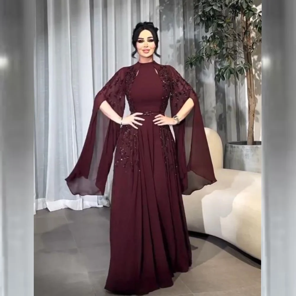Ball Dress Evening Saudi Arabia Chiffon Sequined Beading Ruched Engagement A-line High Collar Bespoke Occasion Gown Long Dresses