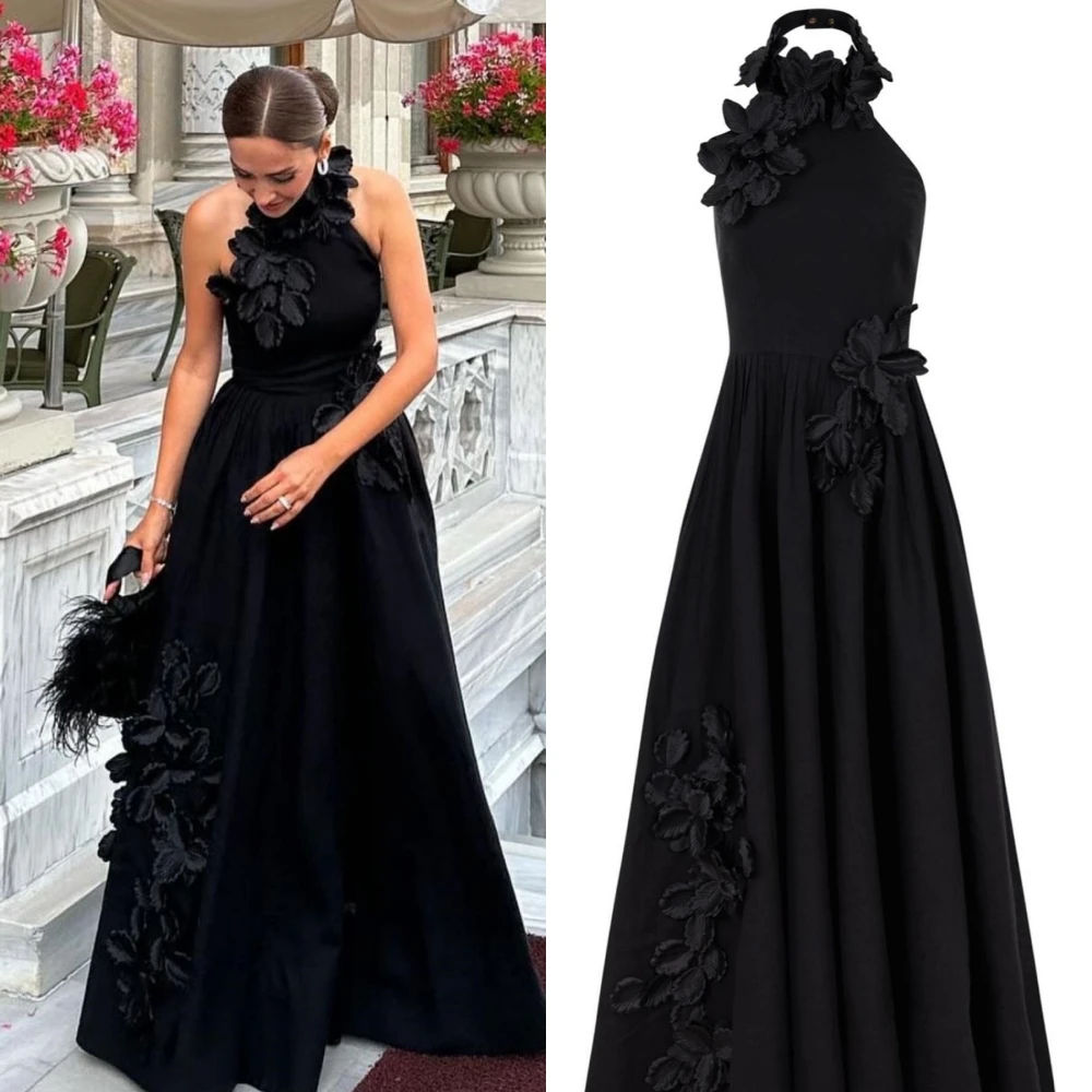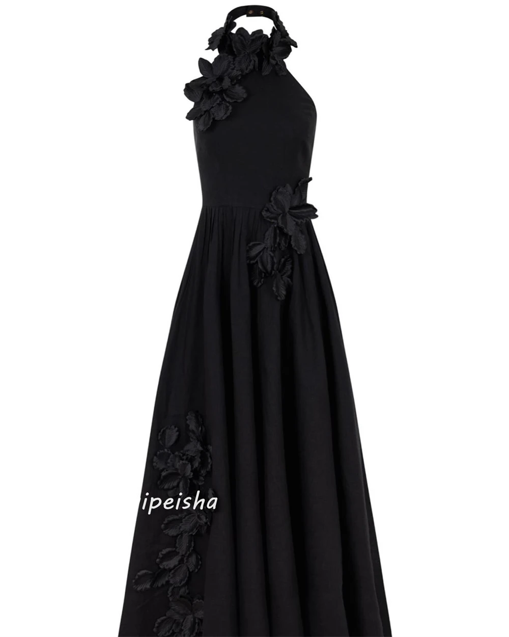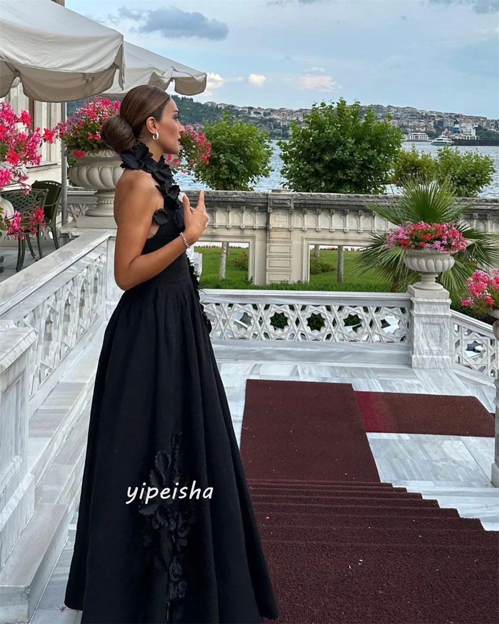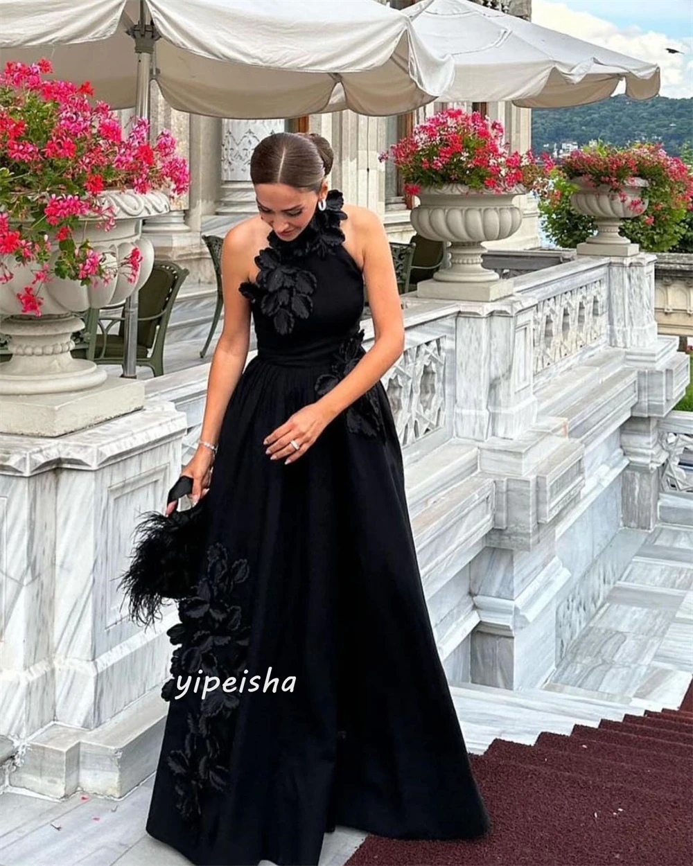 Prom Dress Saudi Arabia Exquisite Halter A-line Flowers Floor-Length Satin Bespoke Occasion Dresses Evening