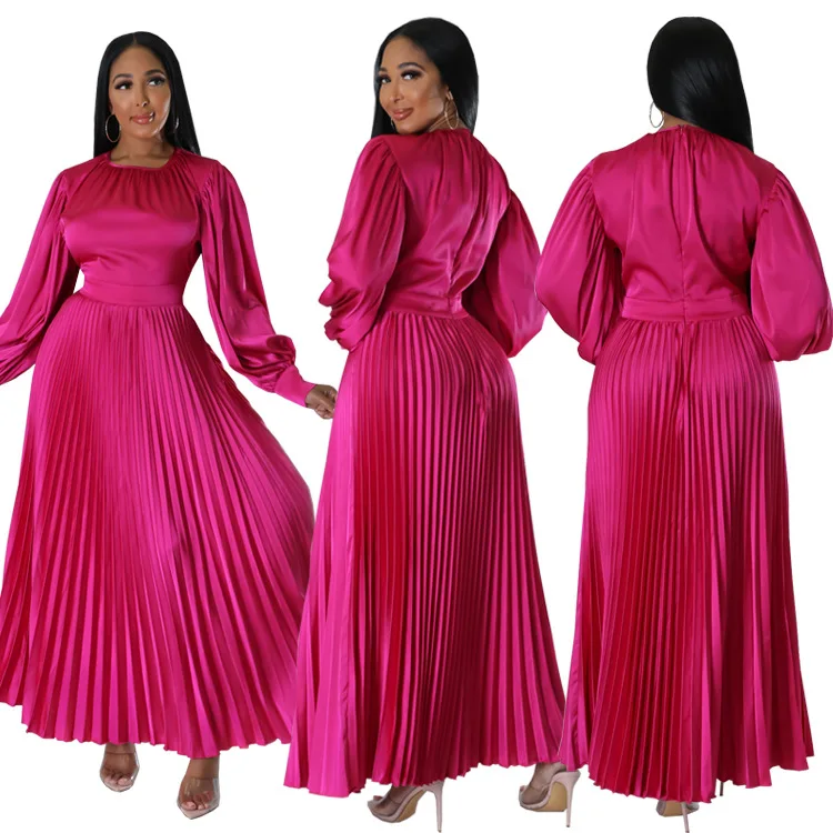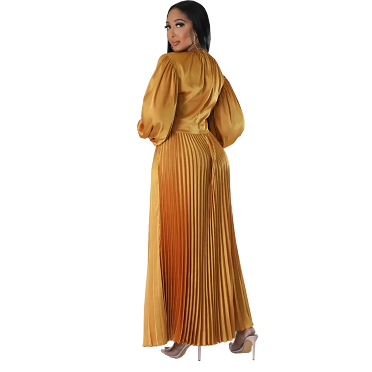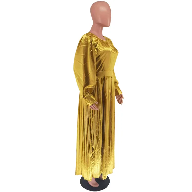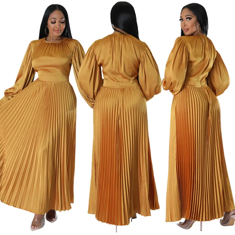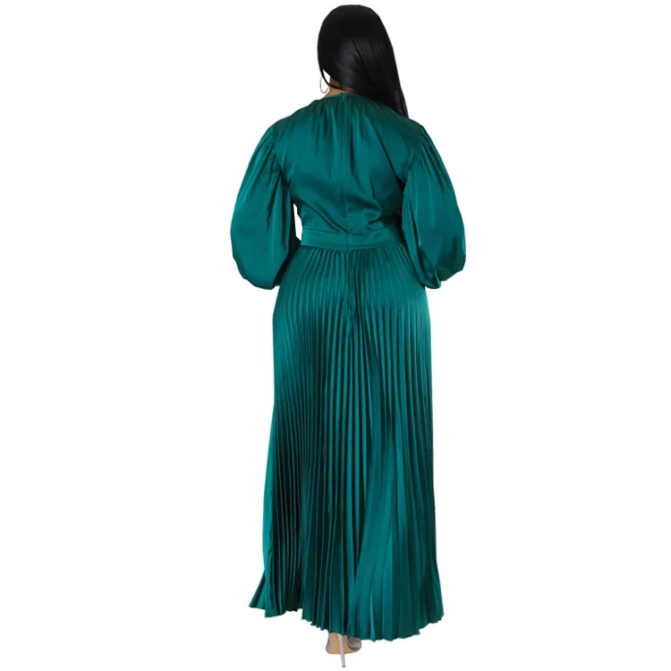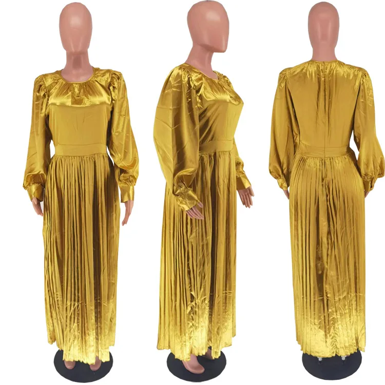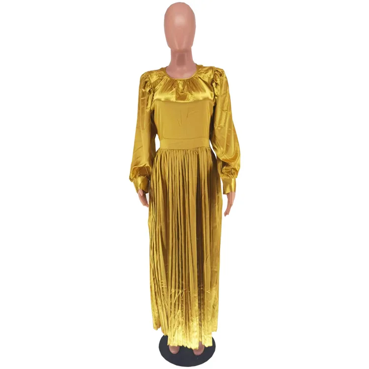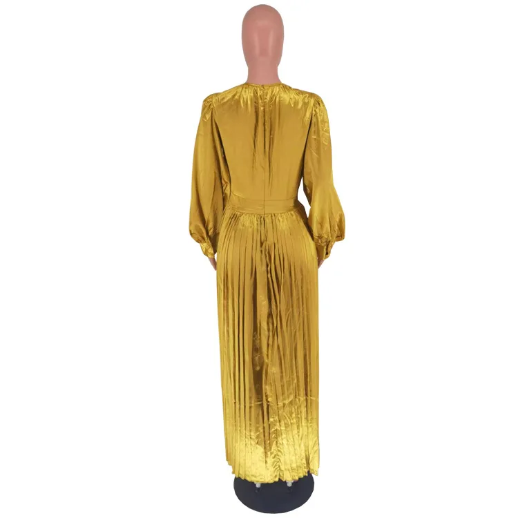 2024 Spring Pleated Loose Fit Maxi Dresses Women Solid Ruched Lantern Sleeve Party Evening Wedding Long Dress Women