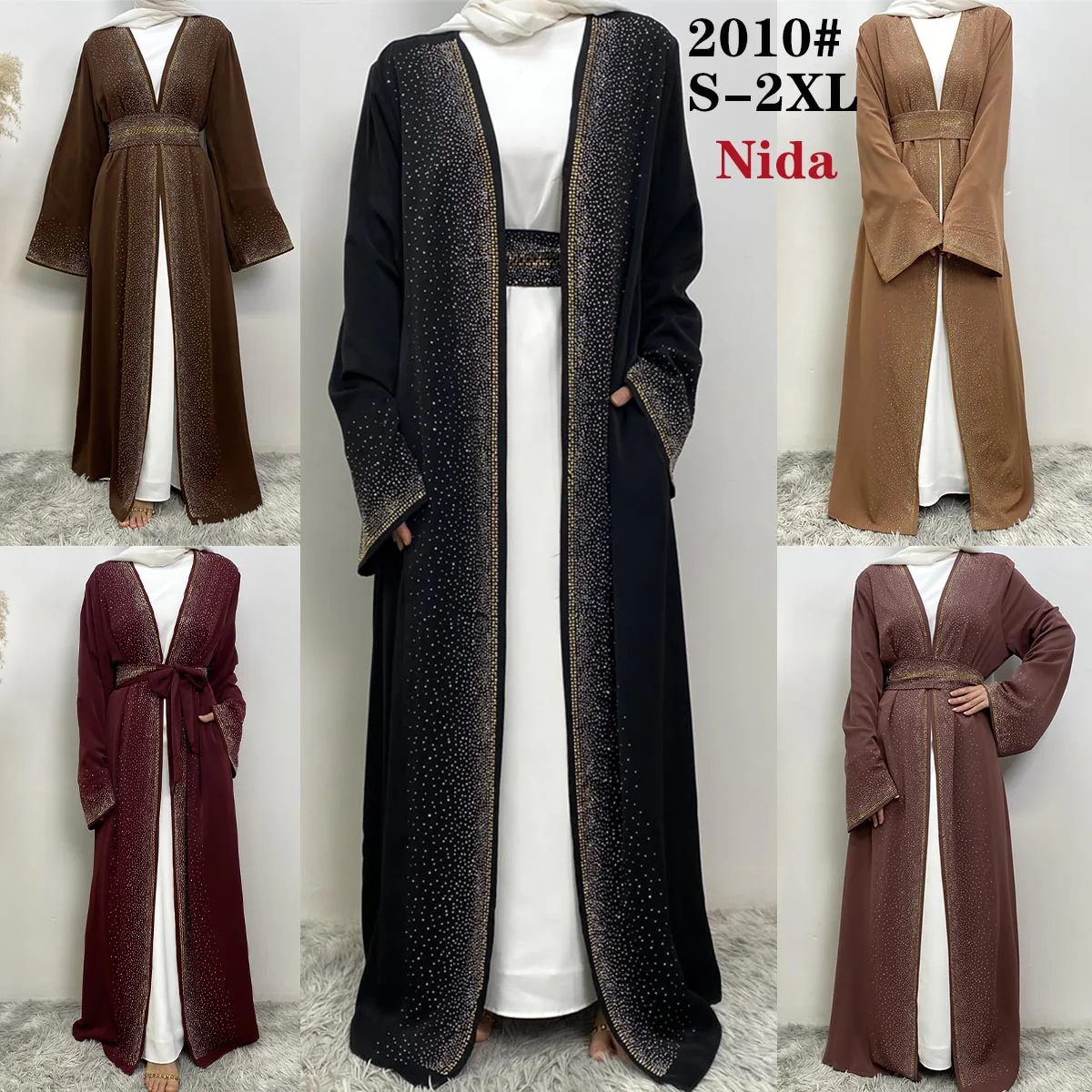 Ramadan Abaya Dubai Luxury 2 Chain Nida Turkey Modesty Robe Elegant With Pockets Muslim Sets Kimono Kaftan Islam Khimar Kebaya C