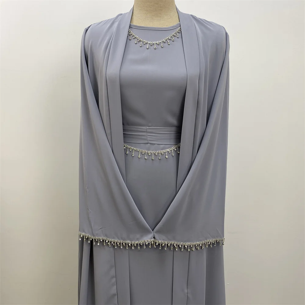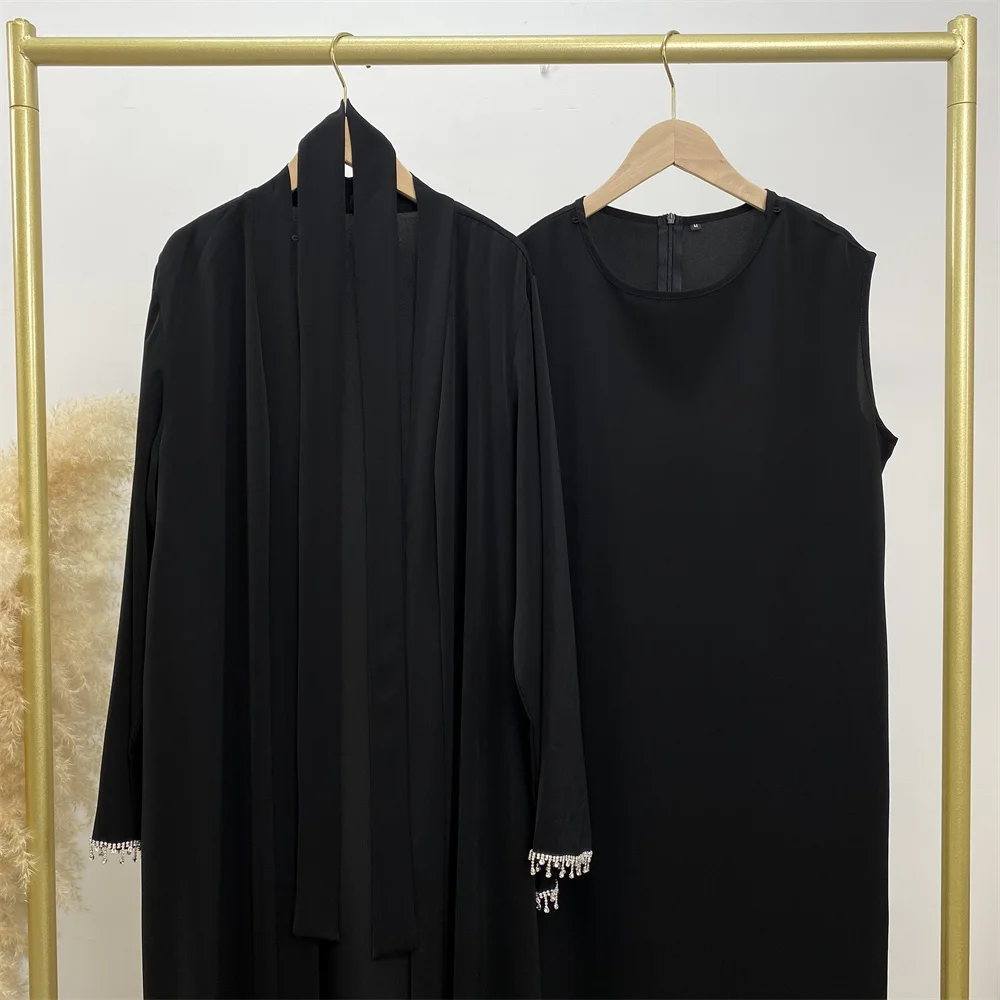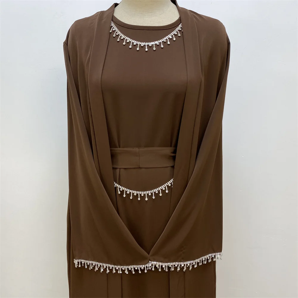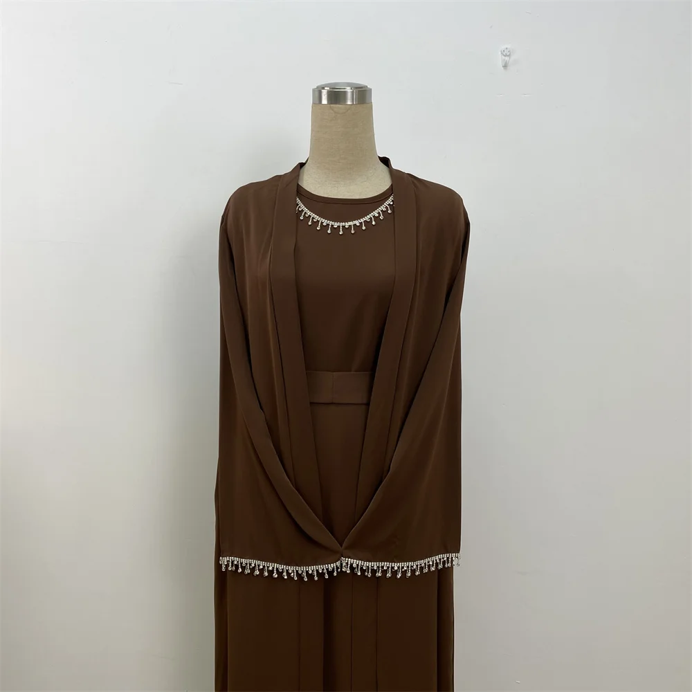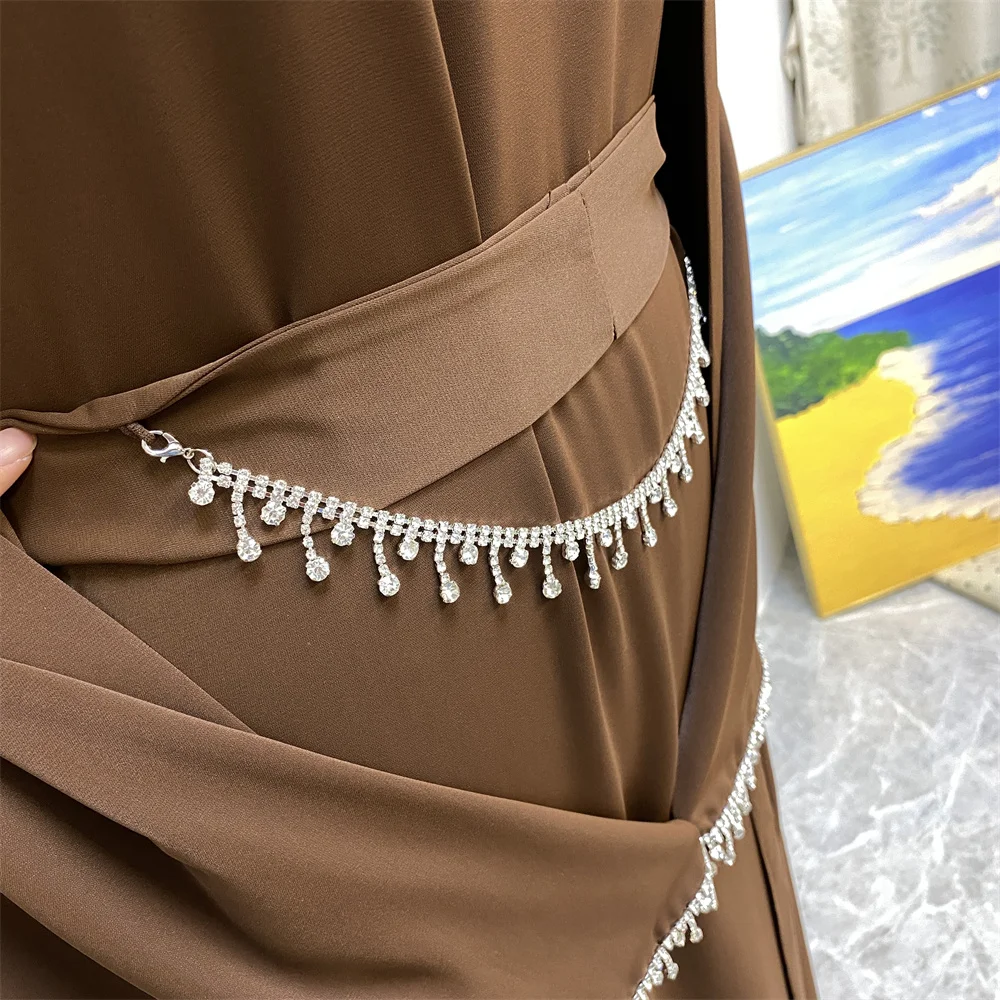 Ramadan Abaya Dubai Luxury 2 Chain Nida Turkey Modesty Robe Elegant With Pockets Muslim Sets Kimono Kaftan Islam Khimar Kebaya C
