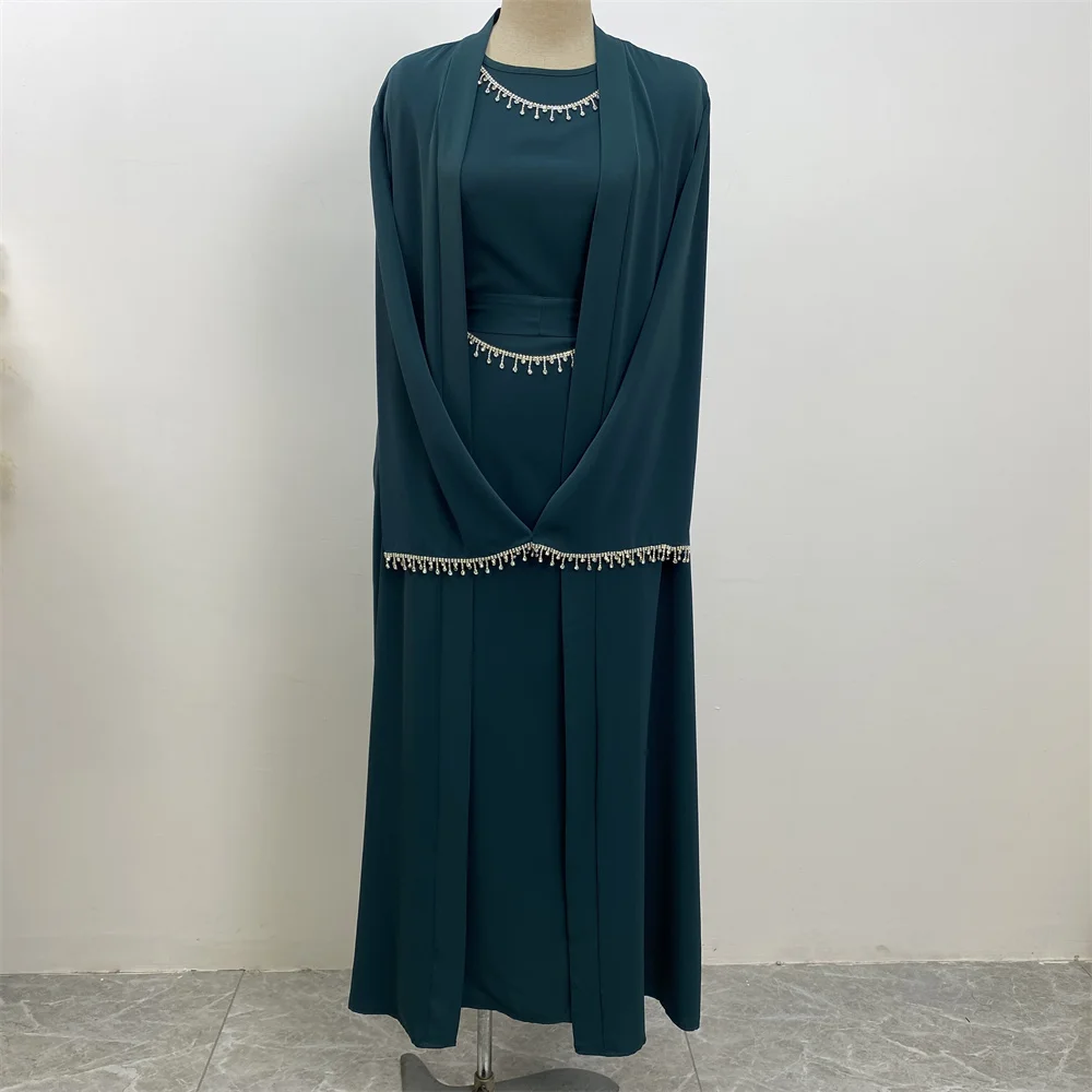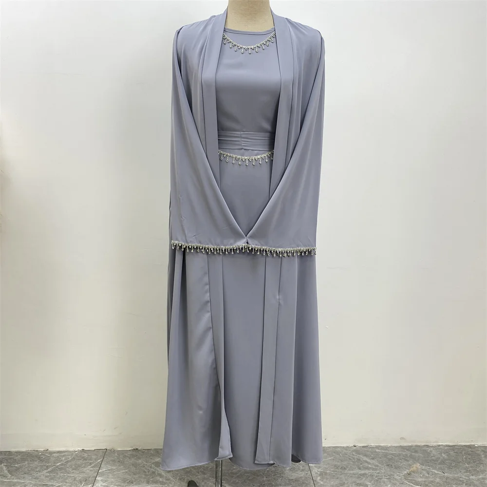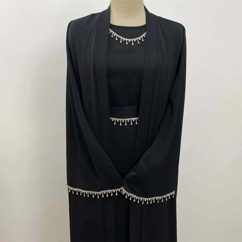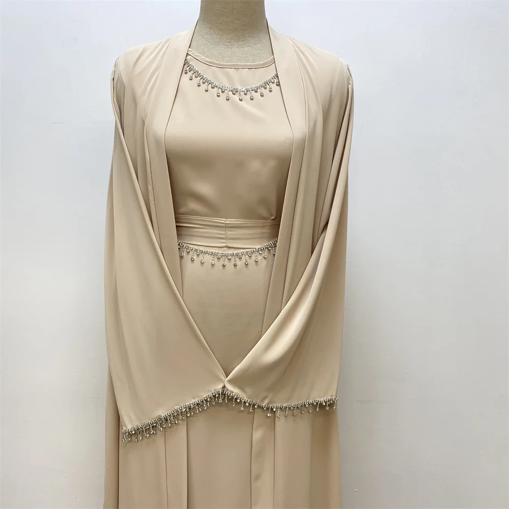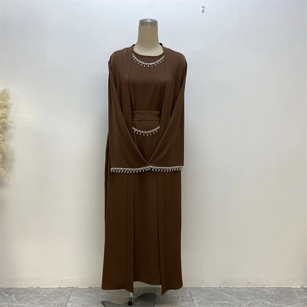 Ramadan Abaya Dubai Luxury 2 Chain Nida Turkey Modesty Robe Elegant With Pockets Muslim Sets Kimono Kaftan Islam Khimar Kebaya C
