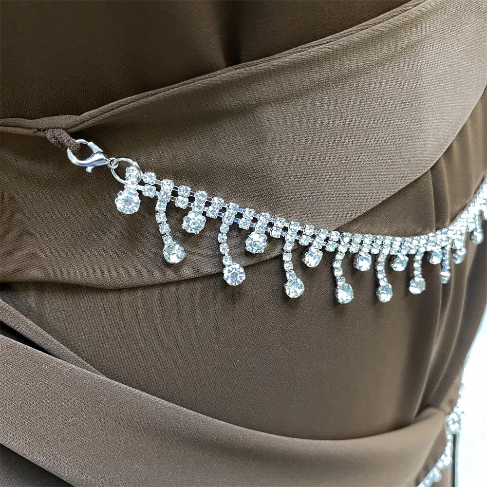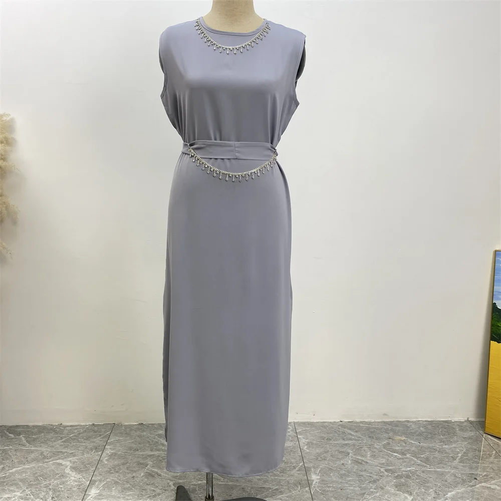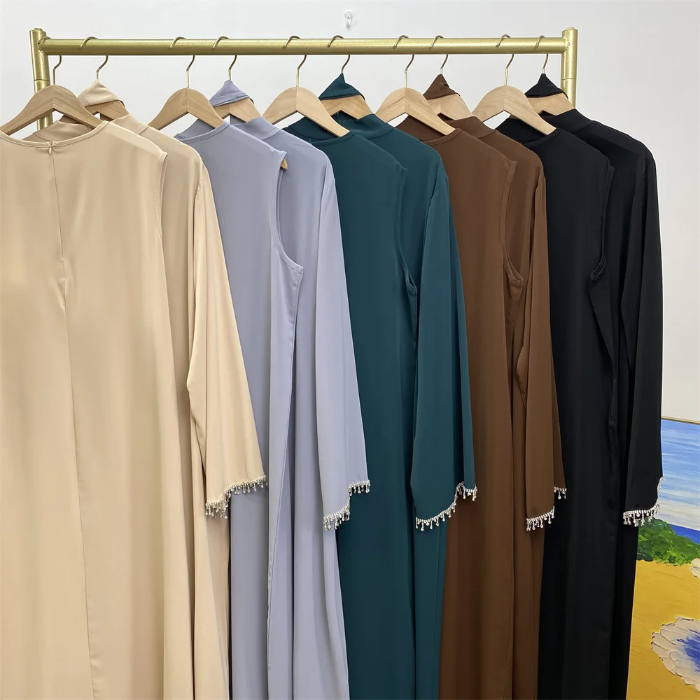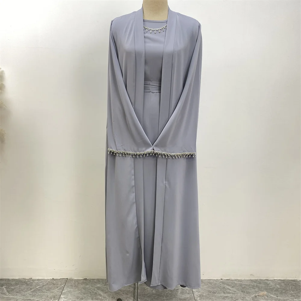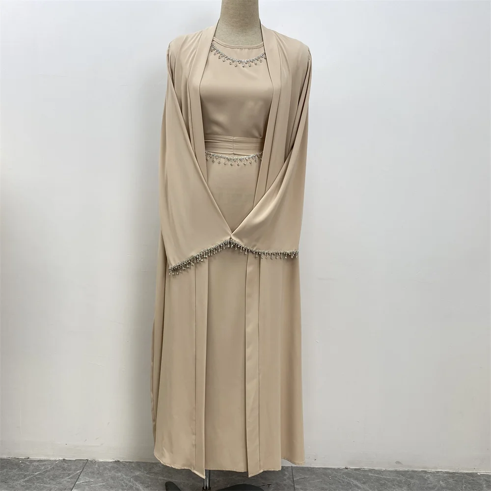Ramadan Abaya Dubai Luxury 2 Chain Nida Turkey Modesty Robe Elegant With Pockets Muslim Sets Kimono Kaftan Islam Khimar Kebaya C