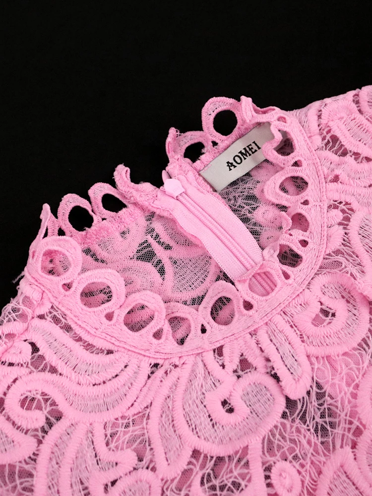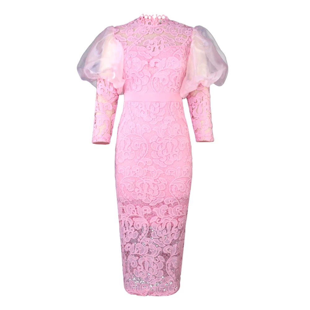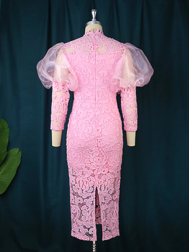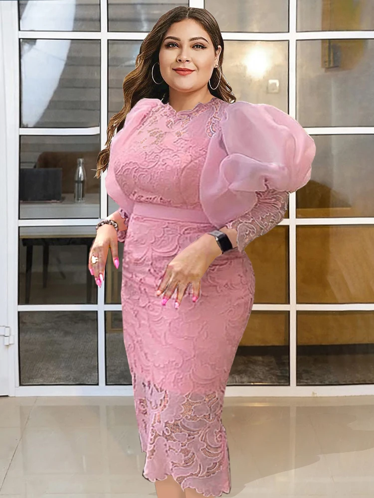 Plus Size Lace Dresses for Women Party Bodycon Flora Puffy Long Sleeve Crew Neck Elegant Summer Birthday Wedding Bridesmaid 2024