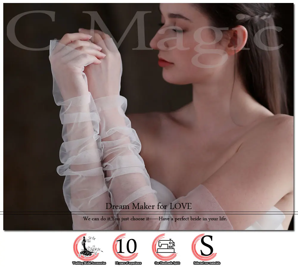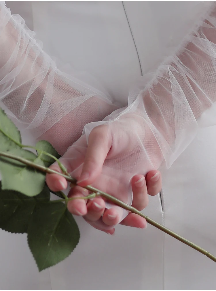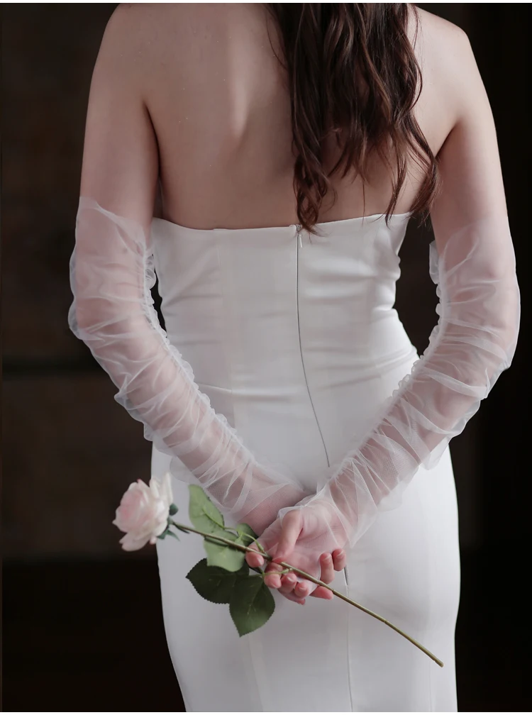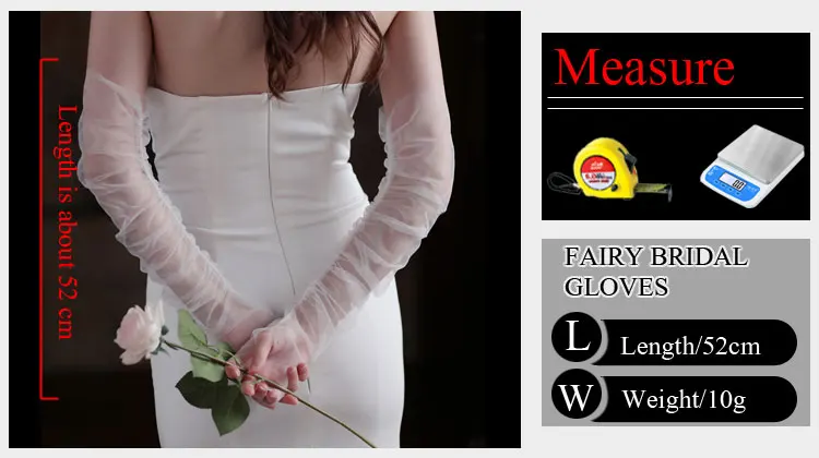 1:This breathable tulle Bridal White Long glove is about 52cm long from the fingertip to the end.